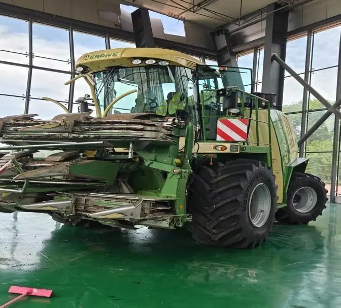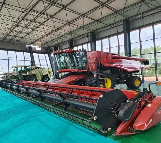 在九三农场,实践团观察了国内外先进农机设备。美国凯斯超大型 9120 轴流滚筒联合收获机和德国科罗尼 700 型青贮收割机性能卓越、效率惊人,让队员们惊叹于国际先进农机水平,也引发了对国产农机未来发展的思考。