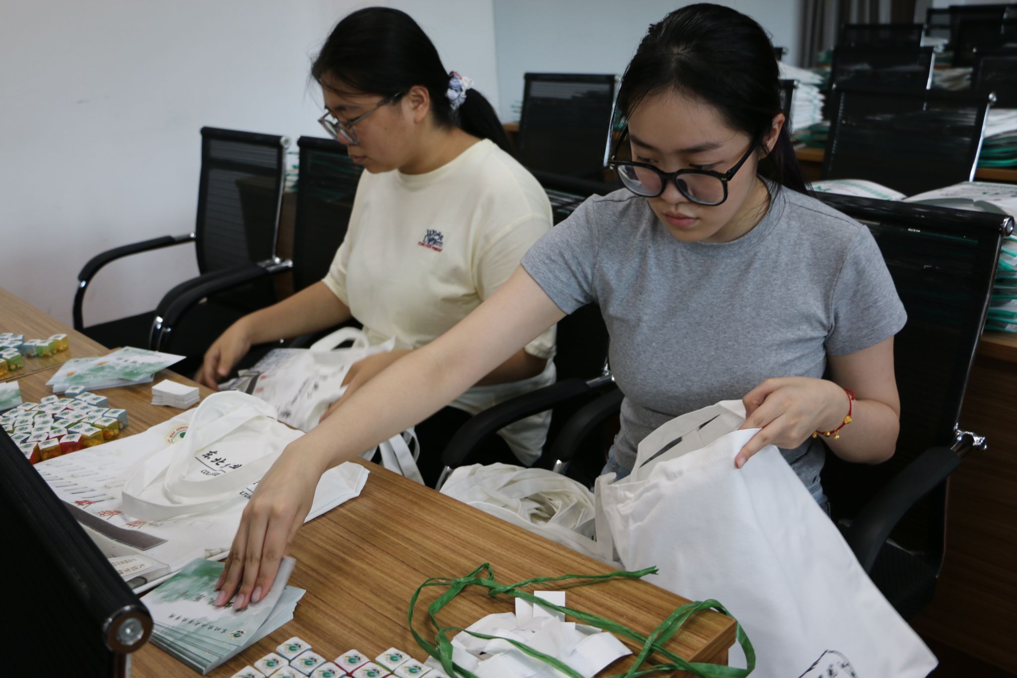 农学院还为新生准备了独具特色的迎新礼包。一份份礼品被志愿者们细心分装,整齐码放等待发放,等待被送到新同学的手中,这份精心设计的礼包既体现了农学院的学科特色,也承载着对新生们的美好祝愿。