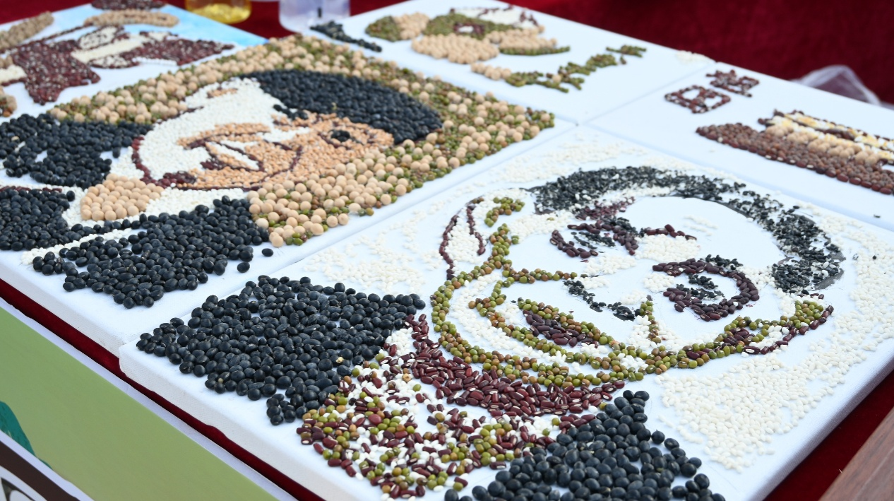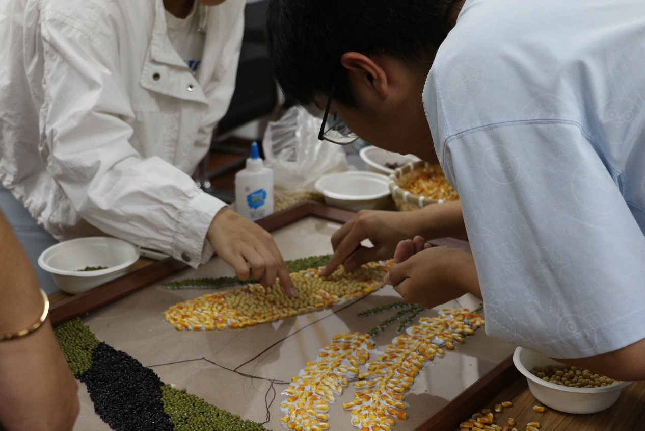 五谷作画:参与者以“丰收”“家乡”“自然”为主题构思创作,从画面布局到谷物粘贴,每一步都融入对农业的理解与情感。最终,大家不仅完成了各具特色的个人作品,还合力打造出两幅生动的集体作品,让 “粒粒谷物” 成为传递耕读文化的载体。