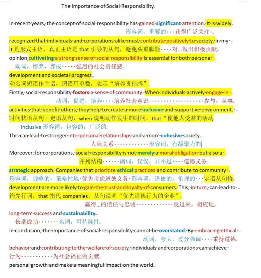 近年来,社会责任这一概念受到广泛关注。人们普遍认识到,个人和企业都应当积极为社会作出贡献。我认为,培养强烈的社会责任感对于个人发展和社会进步都至关重要。