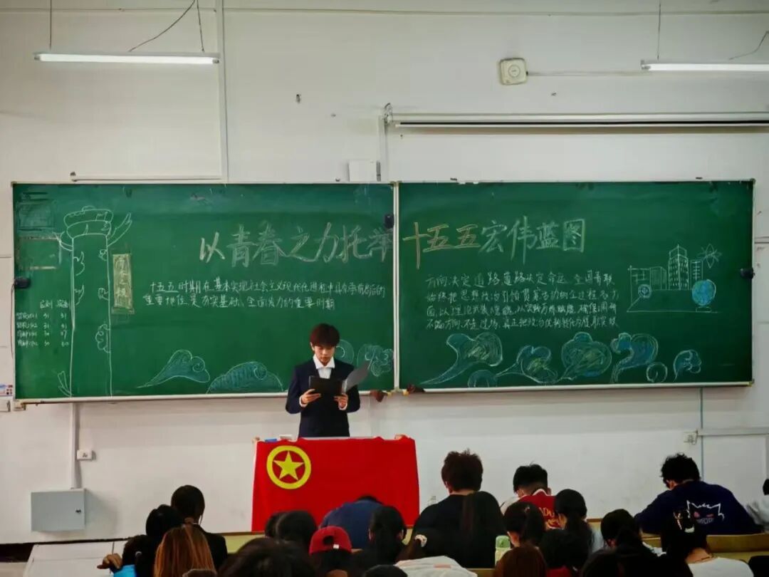 几位同学代表围绕“以青春之力托举‘十五五’宏伟蓝图”的团日活动主题,剖析规划纲要草案的新指标、新看点,对比“十四五”规划中的相关内容,明确国家未来发展的目标任务,让同学们深入理解国家规划的延续性与创新性。