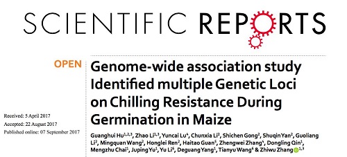 近期,国际学术期刊《Scientific Reports》在线发表了东北农业大学农业部东北地区作物栽培科学观测实验站、玉米非生物逆境生理与调控创新团队的题为 “Genome-wide association study Identified multiple Genetic Loci on Chilling Resistance During Germination in Maize”的研究论文。