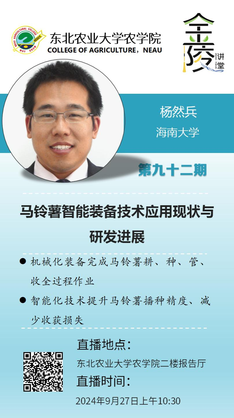 杨然兵,海南大学二级教授,博士生导师,农业农村部热带高效农业智能装备重点实验室主任,教育部“长江学者”特聘教授,国家马铃薯产业技术体系岗位科学家,全国优秀教师,中国科协求是杰出青年,政府特贴专家,泰山产业领军人才等,兼任国家农业科技发展战略智库联盟特约研究员,中国农业工程学会理事,海南省委联系服务重点专家,海南省农业工程学会理事长,国际田间试验机械化协会副秘书长,《农业工程学报》编委,IJABE评审专家等。主要从事土中果实的根茎类作物及种子繁育试验机械化技术研究。主持国家重点研发计划、国家自然基金、公益性行业(农业)科研专项等省部级以上课题30余项,获授权专利110余件,发表论文120余篇,出版专著2部和“十二五”国家规划等教材4部。获国家科技进步二等奖,中国专利奖优秀奖,山东省科技进步一等奖,中华农业科技奖一等奖等奖励。