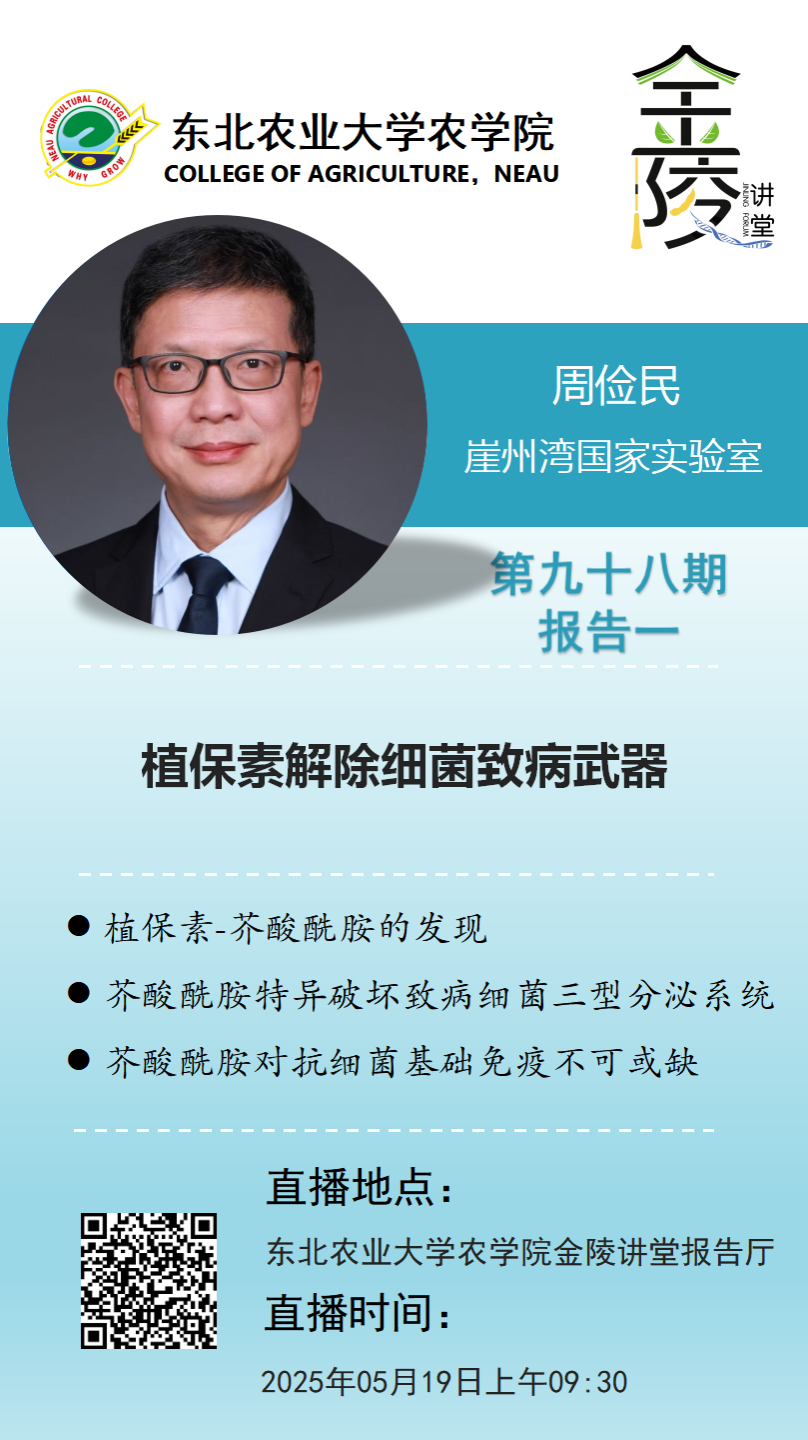 周俭民,研究员,博士生导师,崖州湾国家实验室作物抗病机制与技术团队首席科学家,国家重大科学研究计划首席科学家,国家自然科学基金创新群体学术带头人,国际植物免疫领域的领军科学家之一。在《Cell Host Microbe》《EMBO J》《eLife》《Mol Plant》《Sci China Life Sci》《J Genet Genomics》等期刊担任咨询委员或编委。周俭民在植物免疫受体和病原细菌致病蛋白研究中取得了一系列进展,在植物抗病小体研究中取得了重大突破。2017-2024年,连续八年入选科睿唯安全球高被引学者,荣获“2019年度中国生命科学十大进展”“2020年中国科学院杰出科技成就奖”“2021年中国植物生理与植物分子生物学会杰出成就奖”“2023年未来科学大奖-生命科学奖”,多次在《Cell》《Nature》《Science》等上发表重要工作。