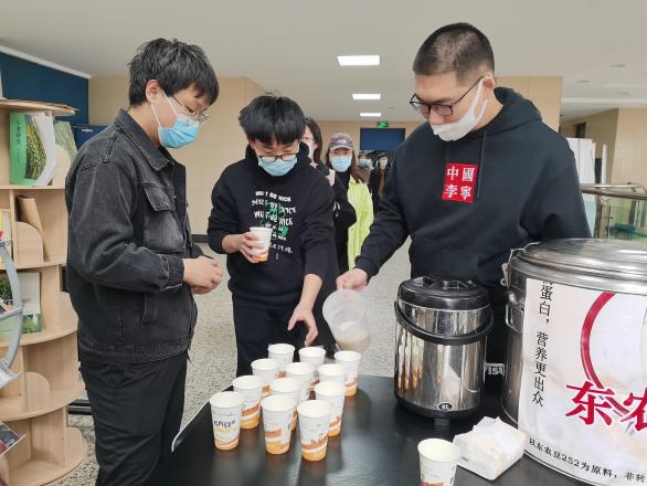 研究生们在学院领取暖心豆浆