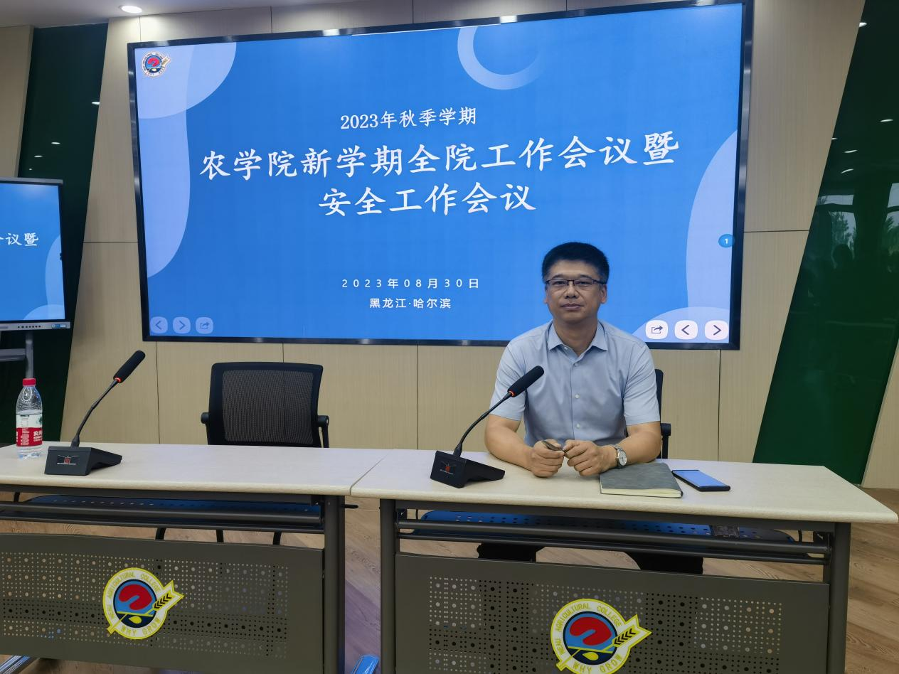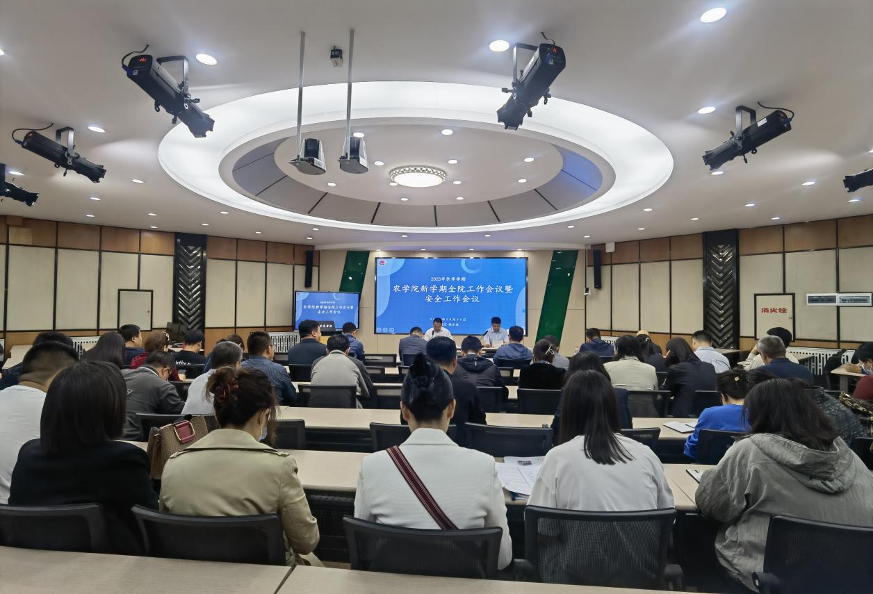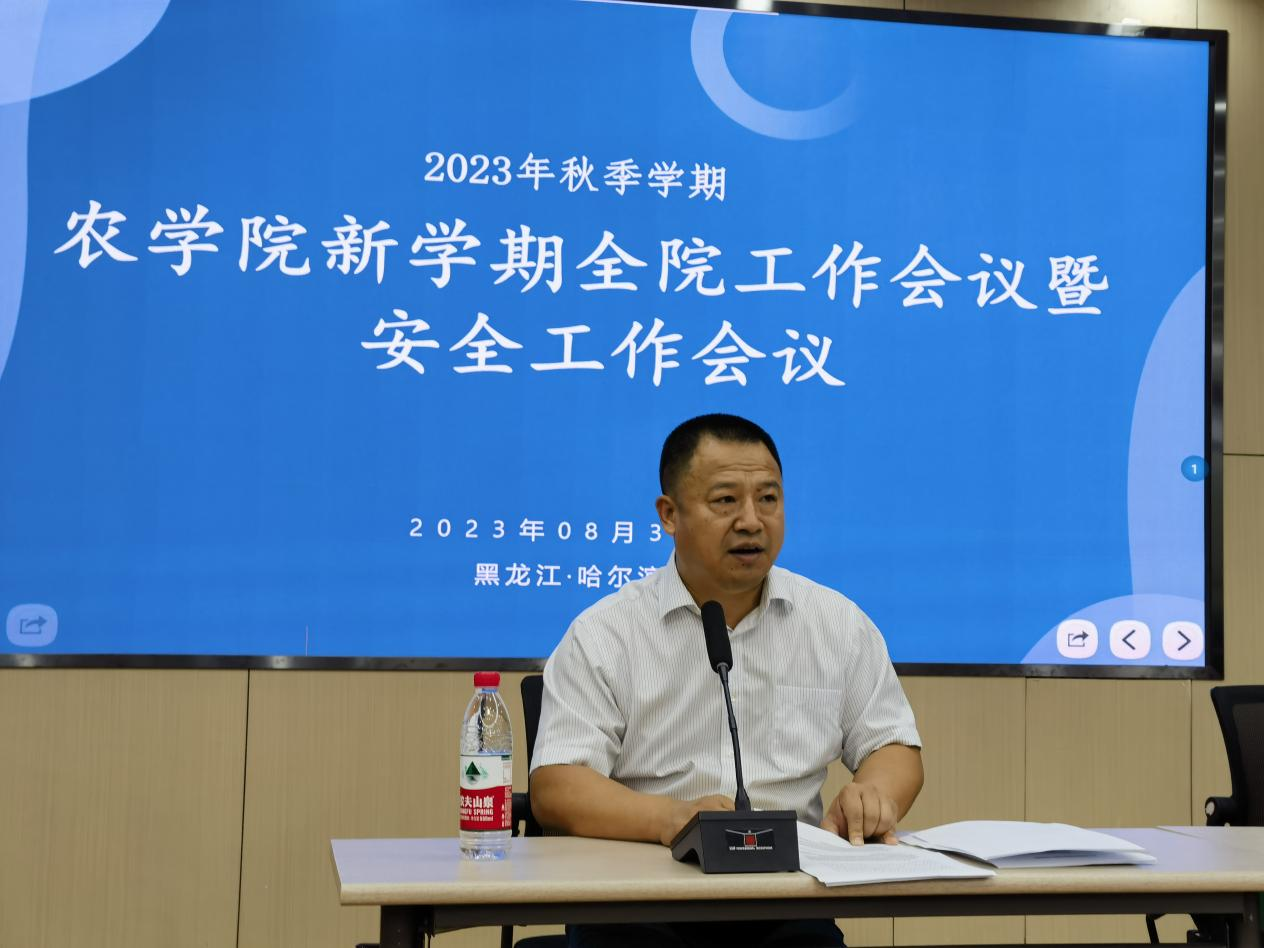 为扎实推进秋季学期各项工作,强化安全责任意识,农学院于8月30日下午在多功能报告厅召开2023年秋季学期全院教师暨安全工作会议。学院领导班子、全体教职工参加会议。会议由学院党委书记李晓书主持。