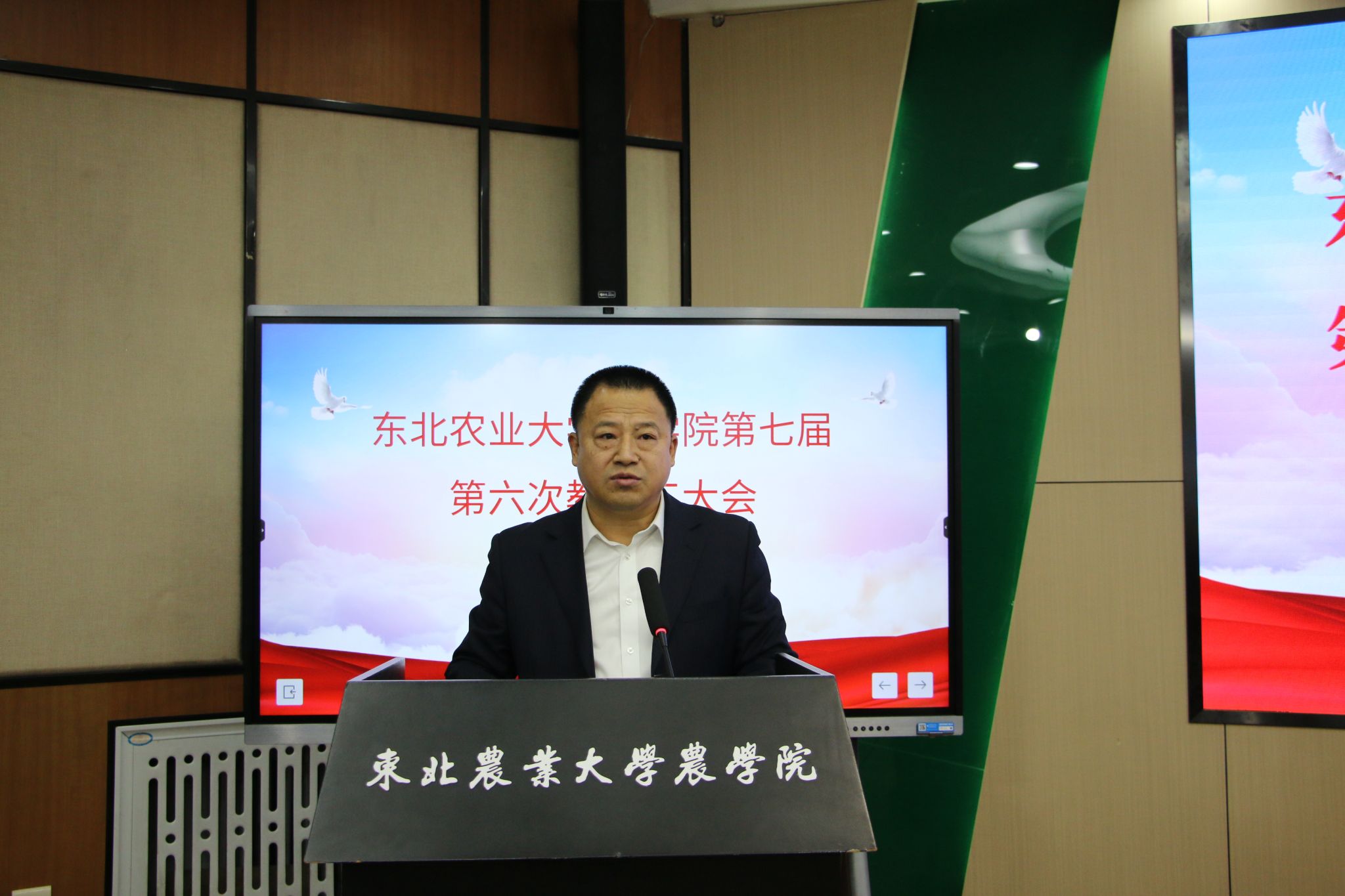 大会在庄严的国歌声中拉开帷幕。会议听取并审议了院长陈庆山作的《2023年农学院工作报告》,报告围绕党建工作、本科及研究生教学工作、科研工作、学科及团队建设工作、平台建设工作、学生工作、纪检工作等十三个方面取得的成绩进行了全面的总结回顾。明确提出了2024年工作的基本思路和重点任务,为学院下一步工作指明了方向。《报告》目标明确、切合实际、重点突出,集中反映了全体师生员工的共同愿望。