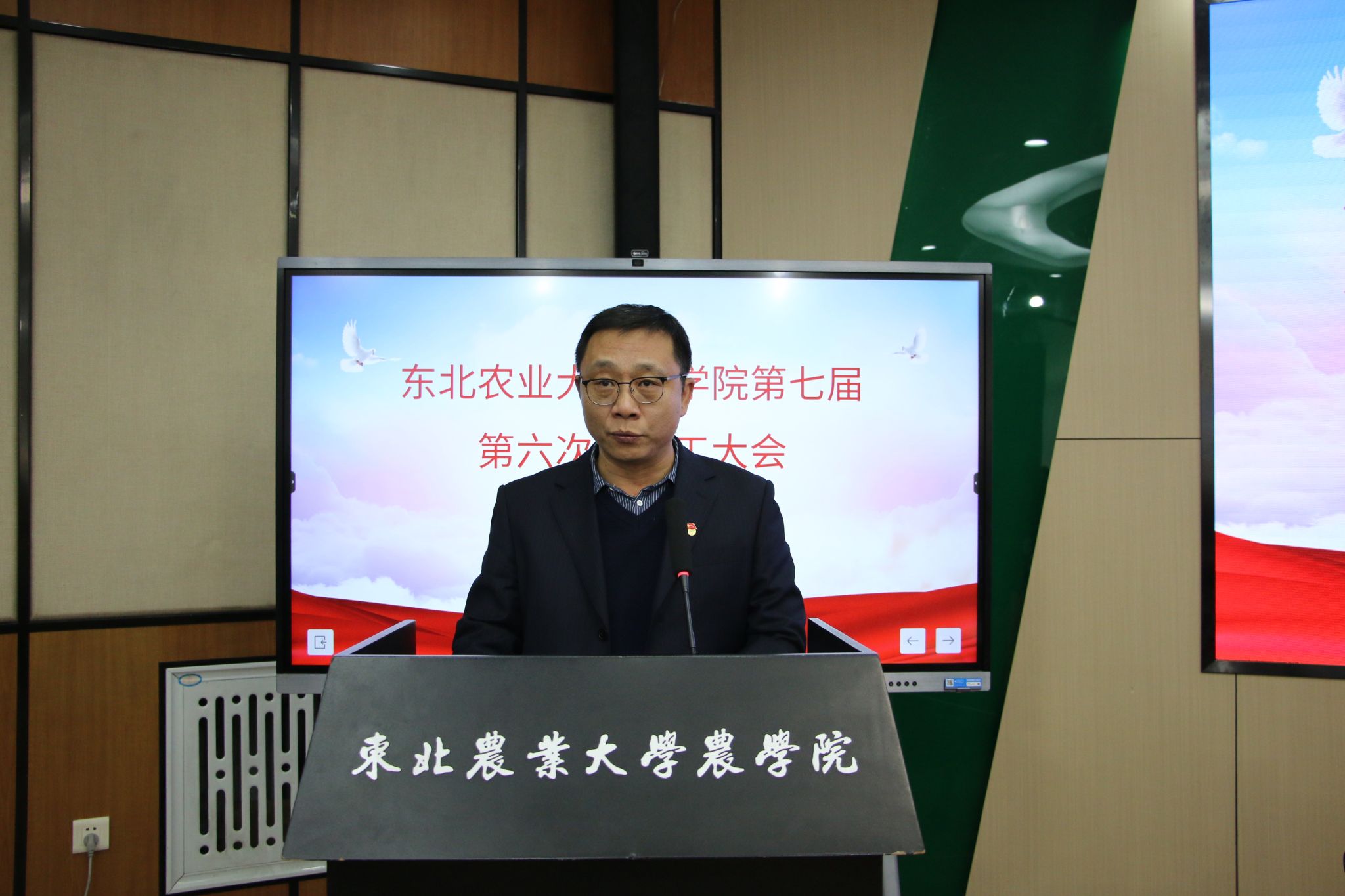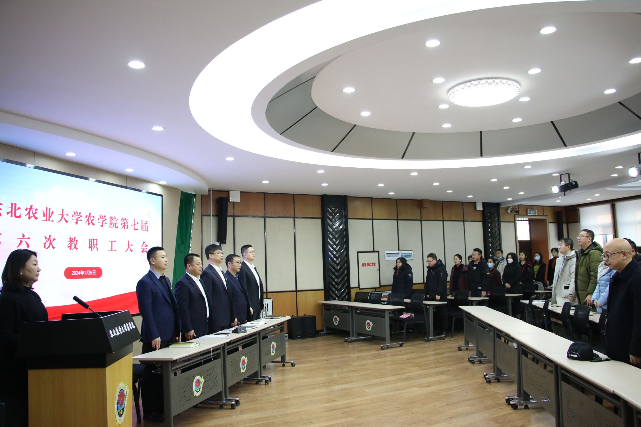 1月5日,农学院七届六次教职工大会在农学楼多功能厅召开。农学院领导班子、全体教职工参加会议。大会由农学院党委副书记、工会主席张华英主持。