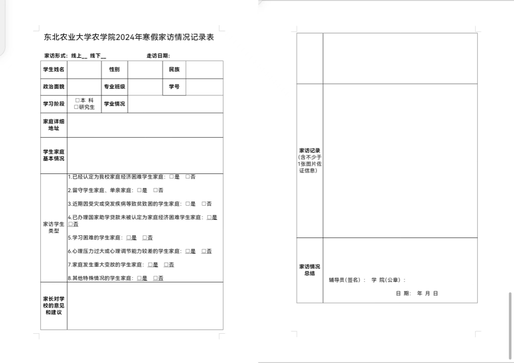 家访记录表