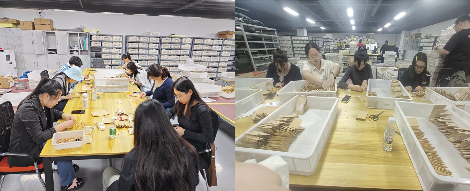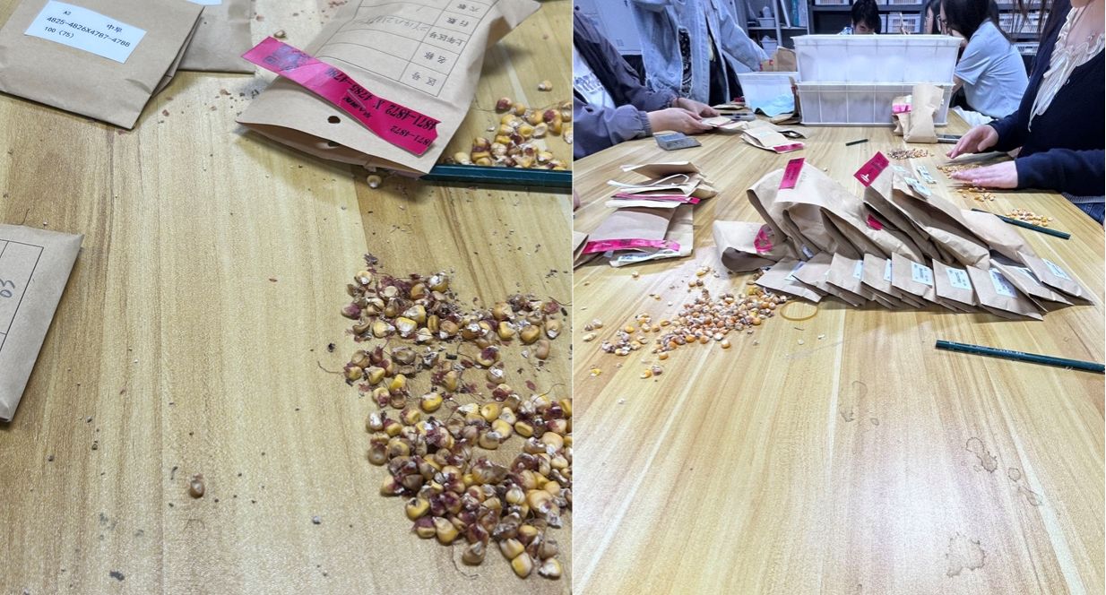 为助力公司完成通过全基因组选择创制的种质的播种准备工作,小组同学进入育种室,整理归纳了袋子万余个,分装了玉米育种材料不同家系两千余个,准备了大豆品系500余份,所有种子全部完成装袋装签和电子台账计入。对玉米和大豆育种工作上存在的异同点进行了有意识的比较学习,对作物育种理论在实践中的应用有了新的认识。