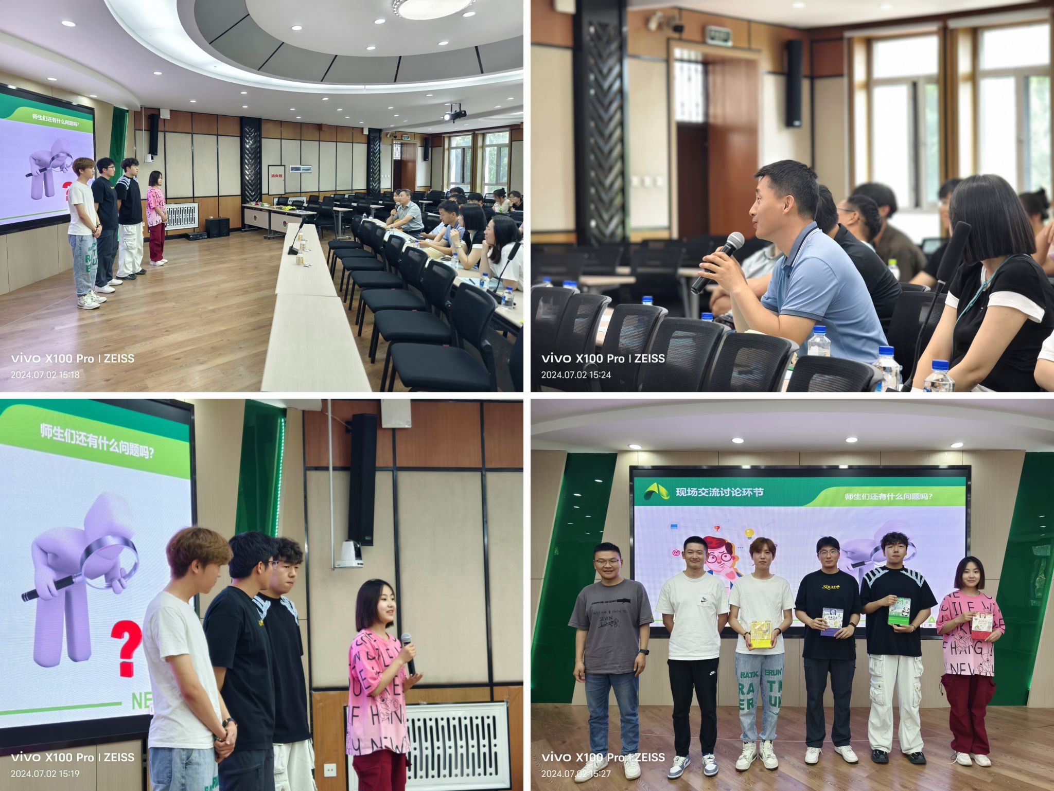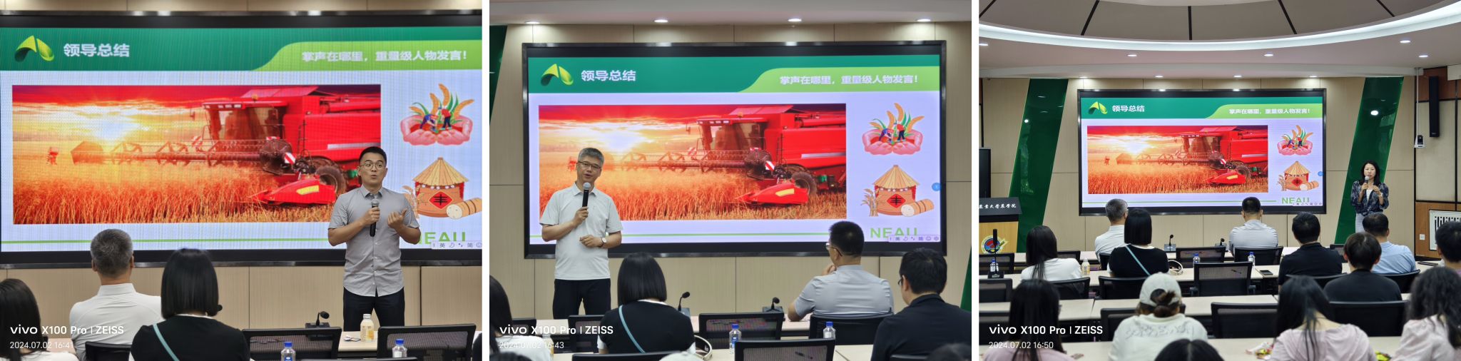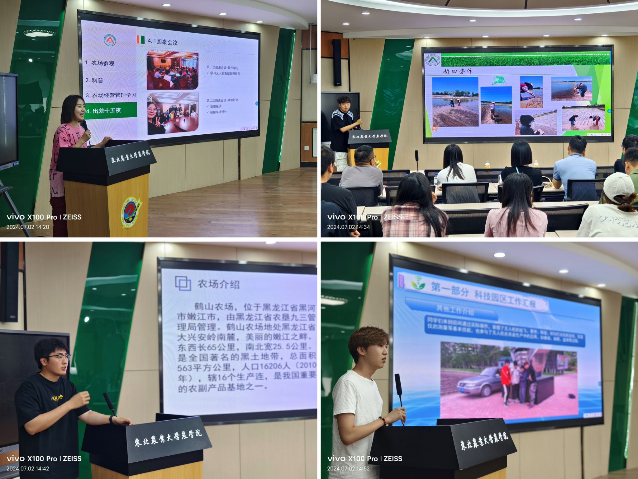 孙晓秋、王葳潇、任益杰、于广阔同学分别分享他们在855、856、鹤山、赵光农场的实习经历及收获