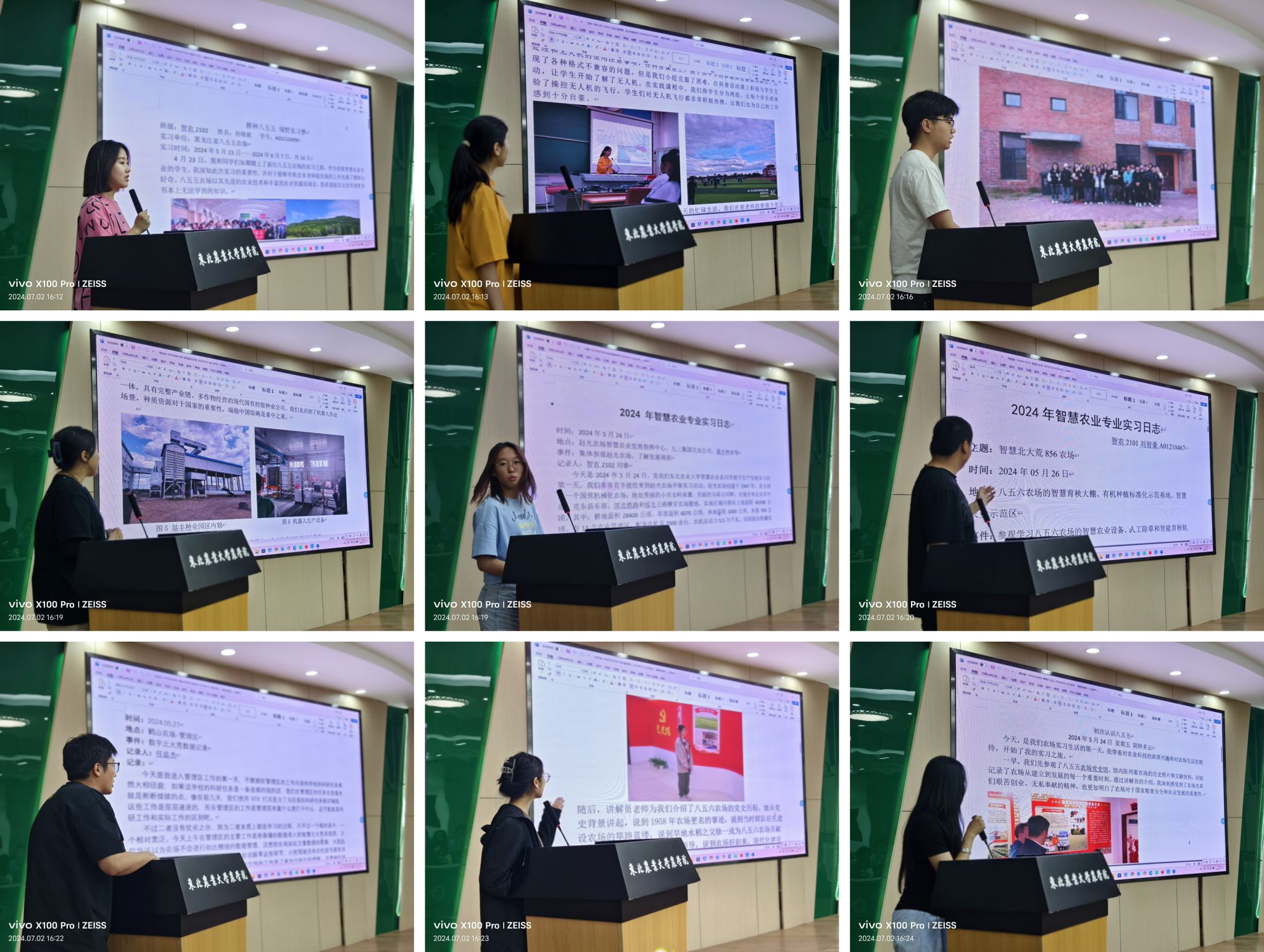 9位同学正在展示他们的智慧农场日志作品