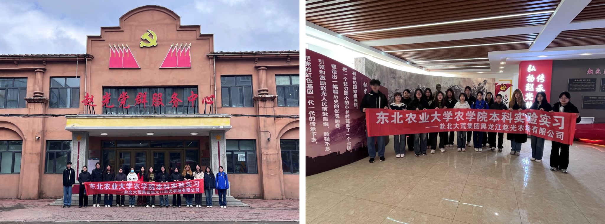 随后,同学们被分配到赵光农场下辖的第一至第八管理区参与实习活动,进一步了解各管理区的种植结构和春播生产进程,身临其境体验了拌肥、施肥等农业生产活动。除此之外,师生们还进行了红色主题教育学习,参观了赵光党群服务中心,深入了解了赵光的发展历程。